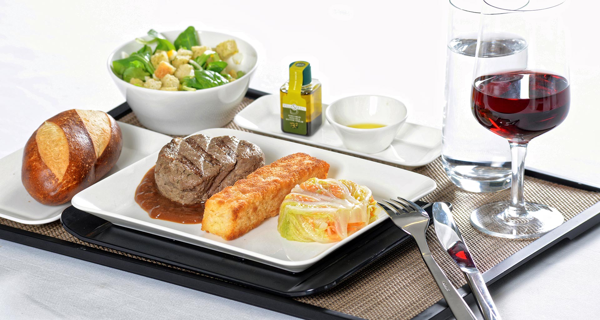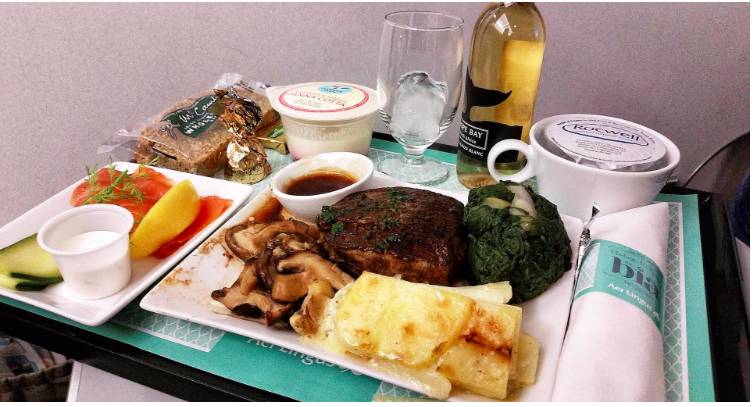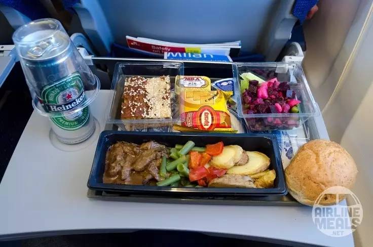 “新加坡航空总是以奢华示人,还可以沿途根据旅客需求定制美食。烤菲力牛扒配葱头龙蒿汁、烤南瓜和四季豆,真的可以和高级餐厅媲美了。”
