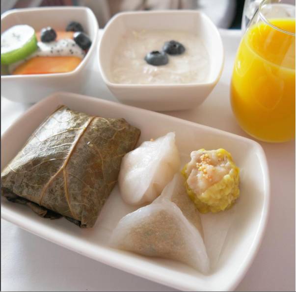 “虽然国泰的出品算不上有多高水平和精致,但飞机上有煎锅、烤面包机、饭煲,以及蒸汽烤箱啊!可以品尝现点现做烤吐司、有机炒蛋、浓缩咖啡或Cappuccino。除此之外,在整个飞行过程中,任何人都能够无限量享用杯面哦!”