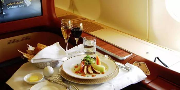 “阿曼航空会按季节提供最适宜食材,都盛放在定制的大尺寸瓷器中,头等舱和商务舱的乘客可以尽情享用鱼子酱、法国香槟和饭后点心。相较于机票的费用,这些飞机餐物超所值。”